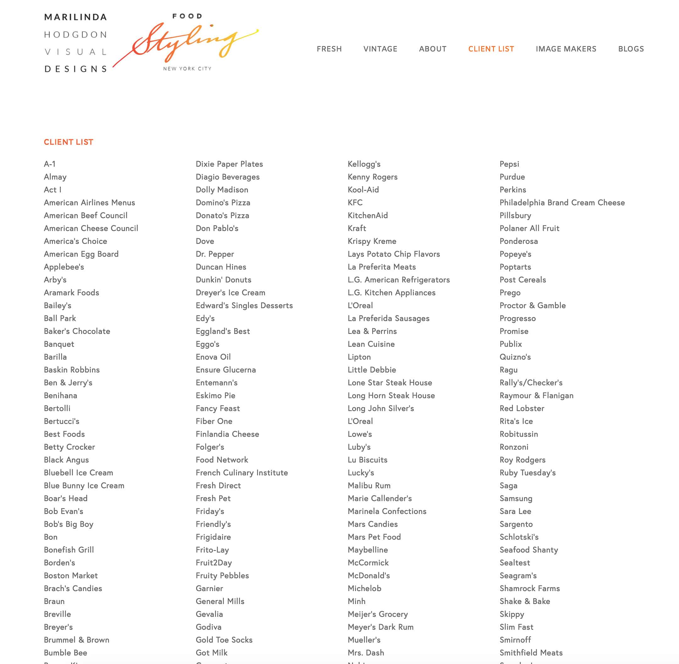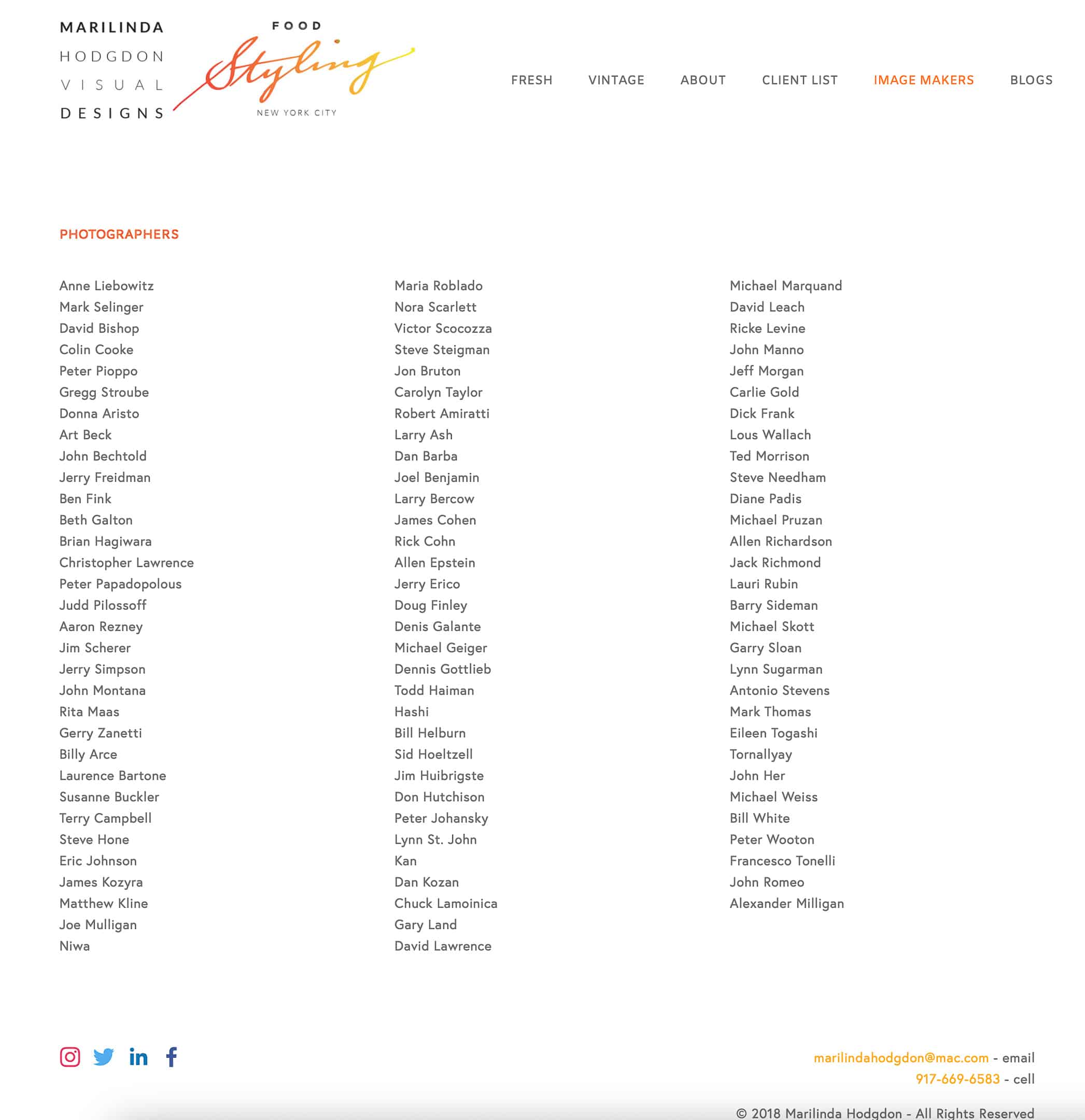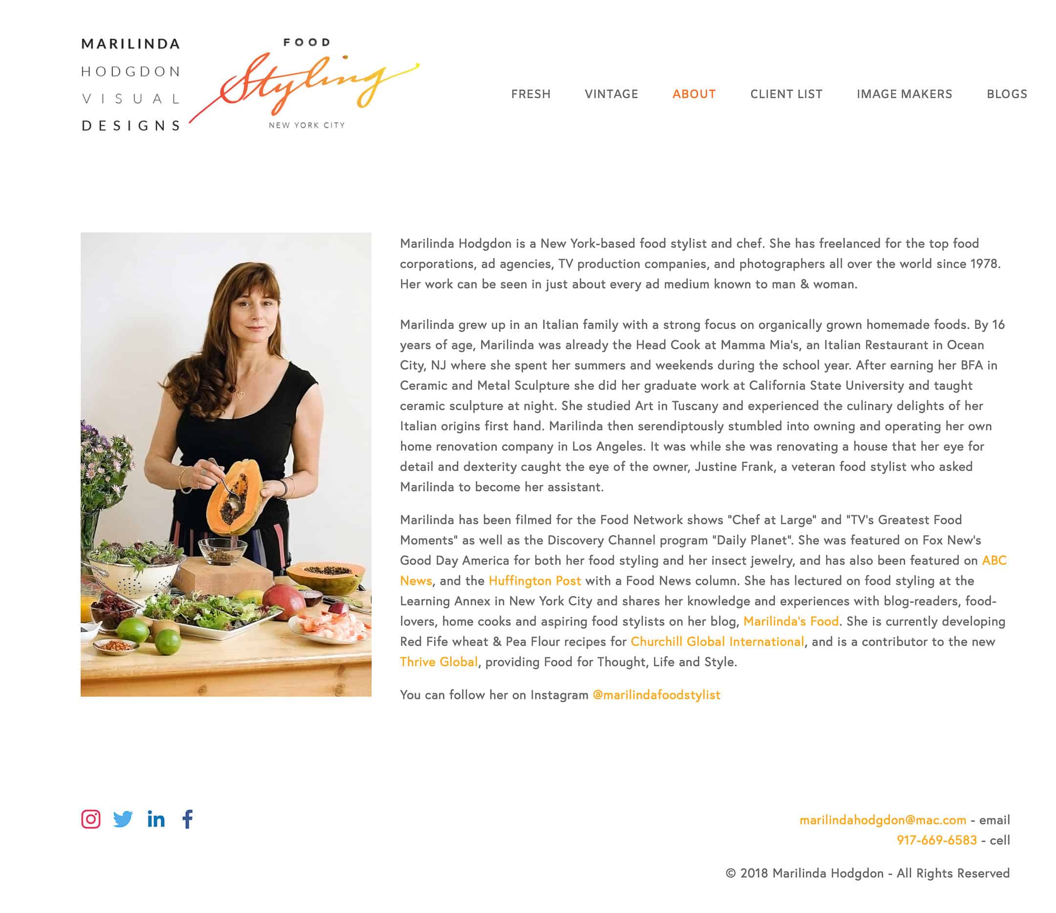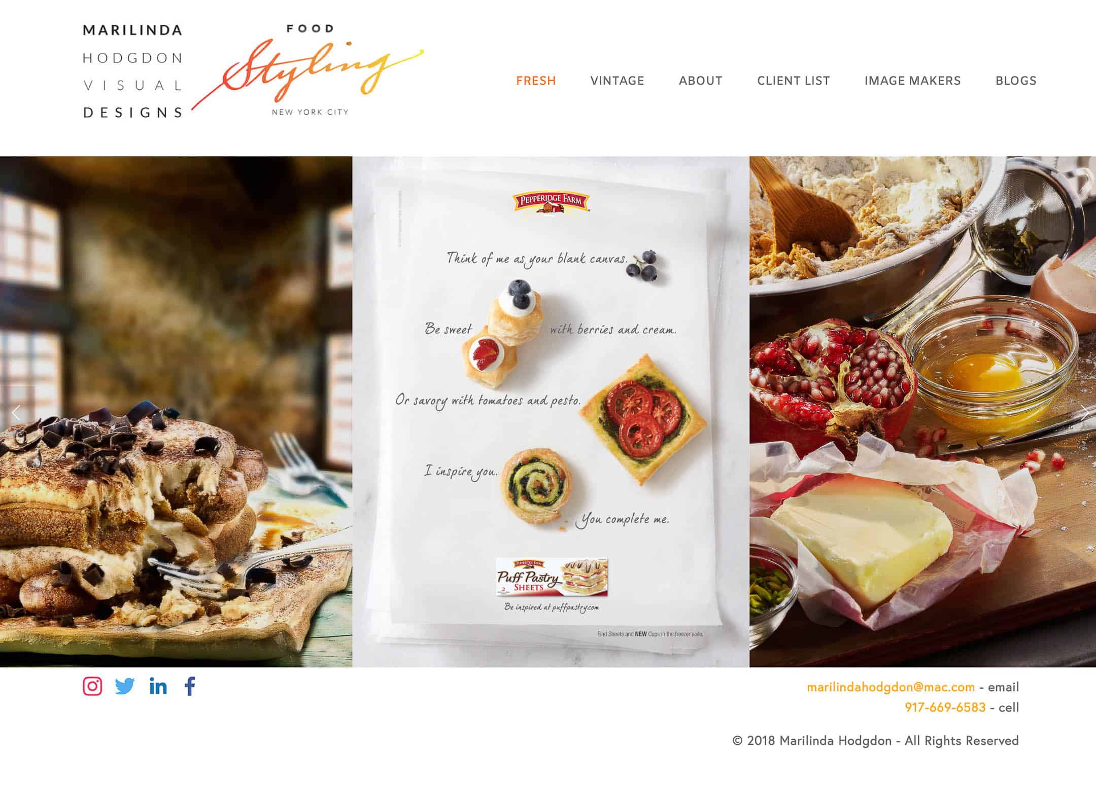 Marilinda Hodgdon is a New York City food stylist and chef who has freelanced for the top food corporations, ad agencies, TV production companies, and photographers all over the world since 1978. We were comissioned to rebrand her logo, organize and remaster her extensive image and commercial archive, and update her website. Additionally, we revamped her recipe blog and provided design and media consulting for various publications and creative projects, including a 40-year retrospective and food styling collaboration in Maine.